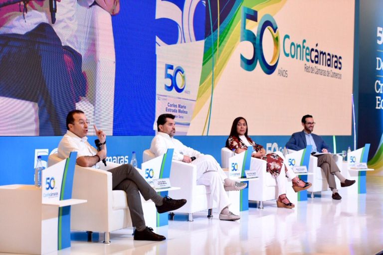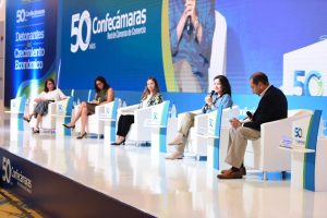 En el marco del Congreso de los 50 años de Confecámaras se realizaron cuatro paneles: el primero fue ‘Articulación para la competitividad’, que contó con la participación de Mabel Lara como moderadora y como panelistas Luis Fernando Mejía, Director de Fedesarrollo: Jorge Enrique Bedoya, Presidente del Consejo Gremial y Roberto Steiner, Investigador de Fedesarrollo. El Segundo panel fue ‘Desafíos del capital humano en la cuarta revolución industrial’, moderado por Camilo Fernández de Soto, Presidente de Colombia Productiva, y tuvo como panelistas a Nancy Fernández, Gerente de 64A Films; Óscar Pérez Agudelo, Presidente del Grupo Réditos y Carlos Mario Estrada, Director del Sena.