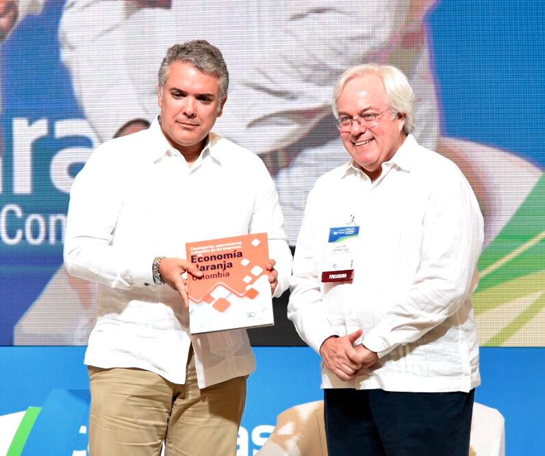 Por su parte, el Presidente de Confecámaras, Julián Domínguez Rivera, presentó al Presidente de la República y a los asistentes al Congreso el estudio ‘Crecimiento, Supervivencia y Desafíos de las Empresas de las Empresas de Economía Naranja en Colombia’, en el que se hace un análisis del comportamiento empresarial de las industrias culturales y creativas del país. “Sin duda, la Economía Naranja atraviesa por una etapa expansiva y su mercado exhibe baja saturación por lo que las compañías nacientes tienen mejores perspectivas para consolidarse”, comentó el Presidente de la Confecámaras.