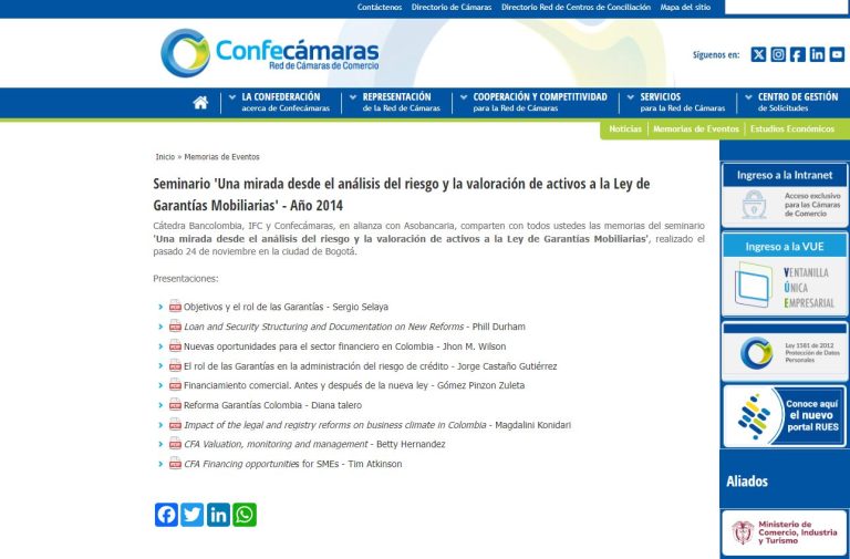 Cátedra Bancolombia, IFC y Confecámaras, en alianza con Asobancaria, comparten con todos ustedes las memorias del seminario ‘Una mirada desde el análisis del riesgo y la valoración de activos a la Ley de Garantías Mobiliarias’, realizado el pasado 24 de noviembre en la ciudad de Bogotá.