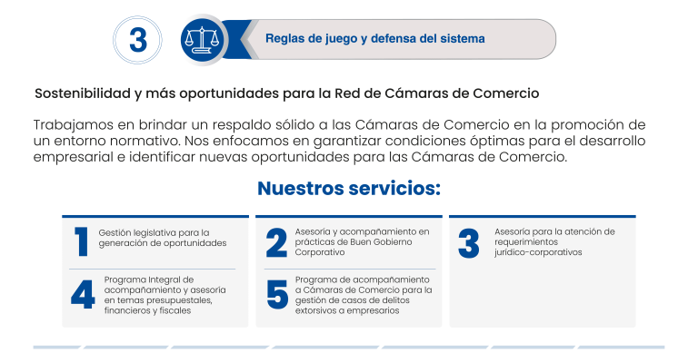 Facilitamos la articulación con el sector público y el relacionamiento con el Gobierno Nacional para que las Cámaras de Comercio cumplan de una manera más eficiente la administración de los registros públicos.